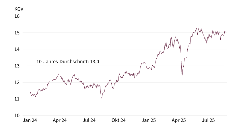 Grafik 4: KGV-Bewertung für den DAX ist seit Anfang 2024 von 11 auf 15 gestiegen