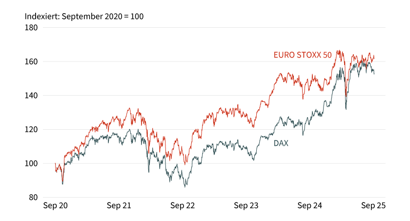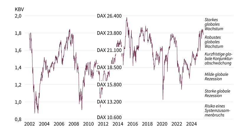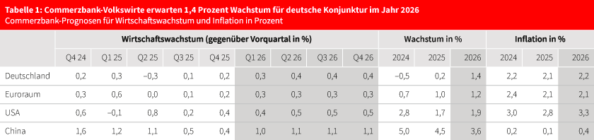 - Und auch für den trotz Zollstreit weiterhin für viele DAX-Unternehmen wichtigen US-Markt prognostizieren wir ein robustes Wachstum von 1,9 Prozent für 2026, gestützt von einer laut unseren Prognosen von 4,5 auf 2,5 Prozent sinkenden Obergrenze für den US-Leitzins.