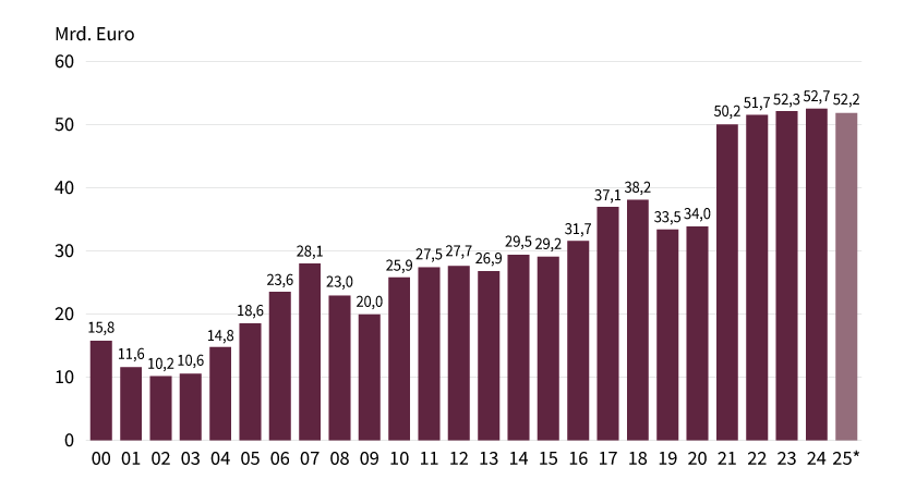 Grafik 6: DAX-Dividendensumme für Geschäftsjahr 2025 stagniert wahrscheinlich mit 52 Milliarden Euro