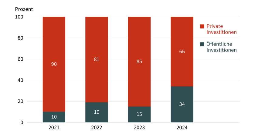 Auch die Investitionen ziehen an, sowohl die privaten als auch die staatlichen. Im vergangenen Jahr sind weltweit fast 2 Milliarden US-Dollar in QT-Start-ups geflossen, ein Anstieg von 50 Prozent im Vergleich zum Vorjahr. Auf die Finanzierung von Venture-Capital- und Private-Equity-Unternehmen entfielen zwei Drittel dieser Gesamtsumme, das restliche Drittel auf die öffentliche Finanzierung (siehe Grafik 2). Dass QT verstärkt als strategisch wichtig erachtet wird, zeigt sich an den jüngsten Förderinitiativen in den USA, Europa und Asien gleichermassen. Die wachsende Begeisterung kommt nicht von ungefähr: Laut einer neuen Analyse von »The Quantum Insider« könnte der globale Markt für Quantencomputer zwischen 2025 und 2035 einen zusätzlichen Umsatz von über 1 Billion US-Dollar zur Weltwirtschaft beitragen. Konkret sichtbar wird das Potenzial in einzelnen Branchen: Beispielsweise können Algorithmen in der Finanzindustrie Portfolios optimieren, im Pharmasektor die Wirkstoffsuche beschleunigen und in der Fertigung die Abläufe optimieren.